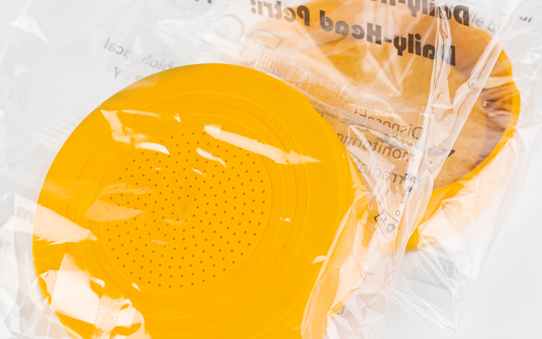 Il pezzo, dopo essere stato stampato, viene immediatamente sottoposto a un flusso d’aria ionizzata per eliminare cariche elettrostatiche. Segue un controllo con sistema di visione per verificare la corretta apertura dei 360 microfori, prima del confezionamento in doppia busta, che protegge la sterilità del contenuto fino all’utilizzo.