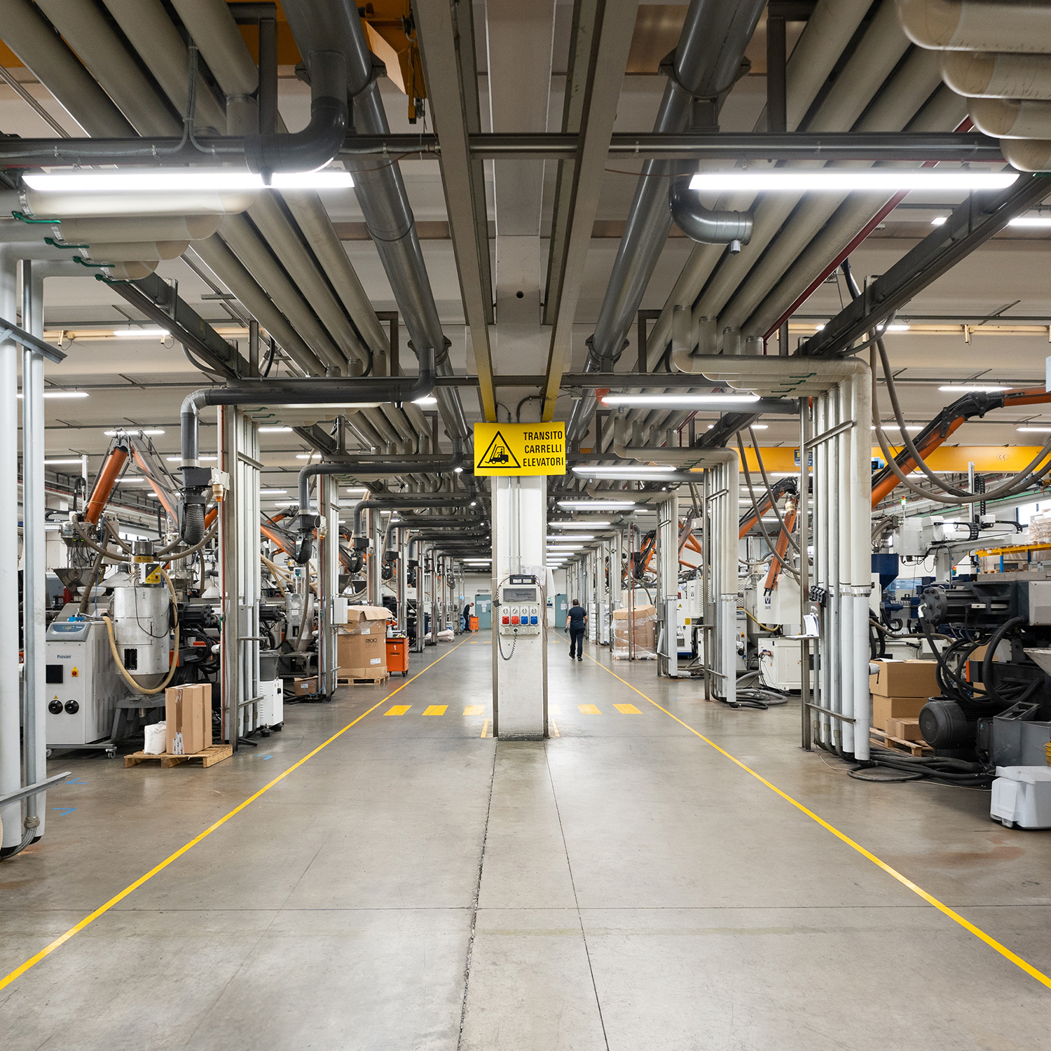 We have five operating sites in Italy and Romania and a team of more than 300 people, who manage the entire process: design, prototyping, Moldflow analysis, mould construction, moulding, assembly, and quality control. We invest in a 5.0 production model, where people and technologies evolve together and where digitisation, automation and sustainability are integrated with specialised technical skills and a shared passion.